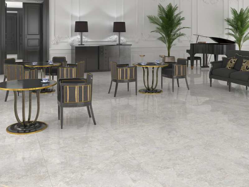 Élégant carreau effet marbre, au format 90×90, de couleur grise avec une finition satinée effet mat. Contrairement au modèle vert, ce carreau est conçu pour des ambiances plus neutres, dans lesquelles prédomine la sophistication.