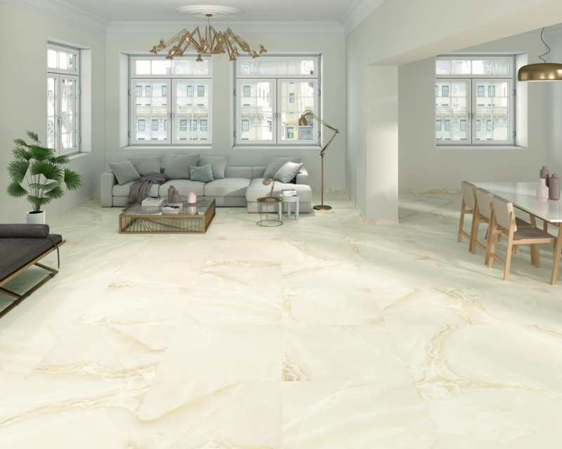 Carreau délicat effet marbre avec finition satinée, sa douce couleur ivoire parcourue de veines inondera de luminosité et de sophistication n’importe quelle pièce.