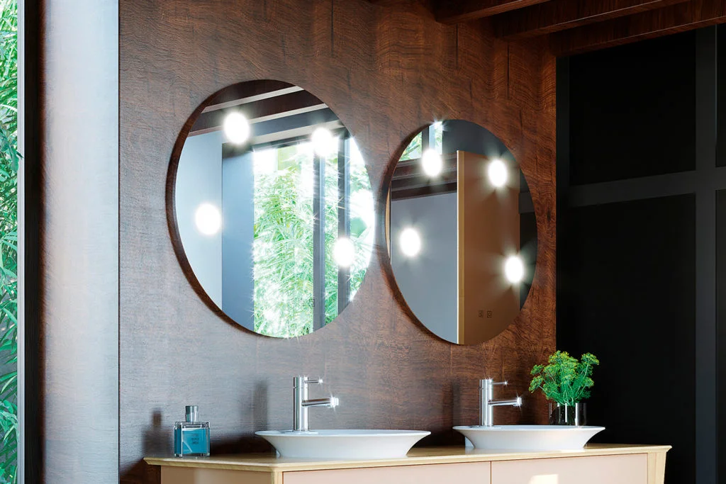 Interrupteur et variateur de lumière gravés sur le miroir.