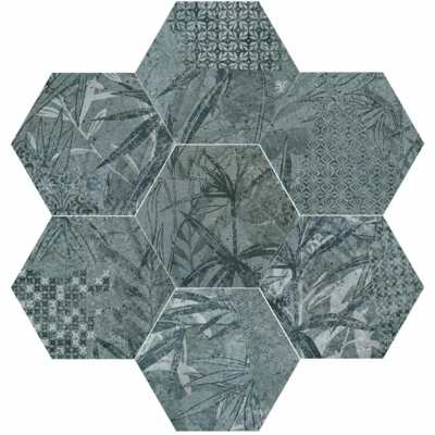 Carreau en grès cérame, au format 15 x 17 cm, dans un ton bleu pétrole et un aspect satiné. Cette pièce est utilisée pour l’intérieur, le revêtement, le carrelage, l’intérieur des piscines et les parois de douche. Son design biophilique simule la végétation tropicale.