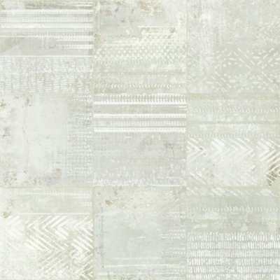 Délicate décoration en forme de patchwork de neuf pièces grises effet vieilli, format 15×15 cm, inspirée par les imprimés des pièces en matière textile de la marque française Malhia Kent.