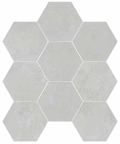 Carreau grès cérame hexagonal de 21,5×25 dans une teinte grise neutre. Conçu pour jouer avec sa disposition et créer des combinaisons avec les autres modèles de la série.